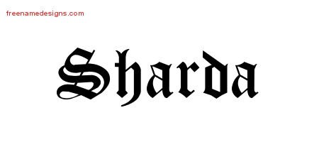 This free name graphic with blackletter lettering is printed with the custom name Sharda.