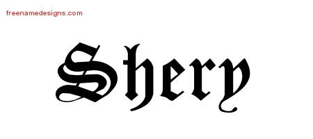 This free name graphic with blackletter lettering is printed with the custom name Shery.