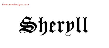 This free name graphic with blackletter lettering is printed with the custom name Sheryll.