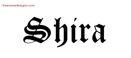 This free name graphic with blackletter lettering is printed with the custom name Shira.