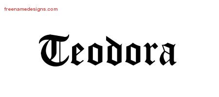 This free name graphic with blackletter lettering is printed with the custom name Teodora.
