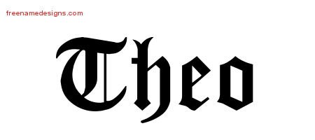 This free name graphic with blackletter lettering is printed with the custom name Theo.