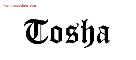 Print graphic Tosha – Print out this black-letter name tattoo design.