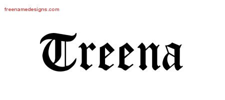 This free name graphic with blackletter lettering is printed with the custom name Treena.