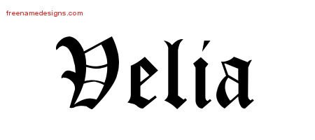 This free name graphic with blackletter lettering is printed with the custom name Velia.