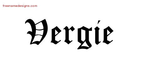 Print graphic Vergie – Print out this black-letter name tattoo design.