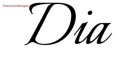 This free name graphic with calligraphic lettering is printed with the custom name Dia.