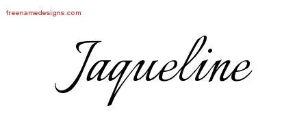 This free name graphic with calligraphic lettering is printed with the custom name Jaqueline.