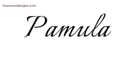 This free name graphic with calligraphic lettering is printed with the custom name Pamula.