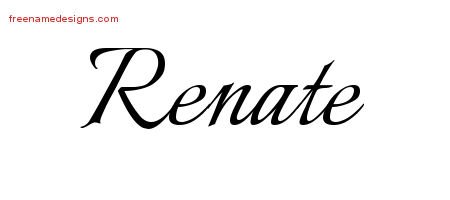This free name graphic with calligraphic lettering is printed with the custom name Renate.