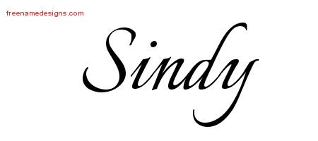This free name graphic with calligraphic lettering is printed with the custom name Sindy.