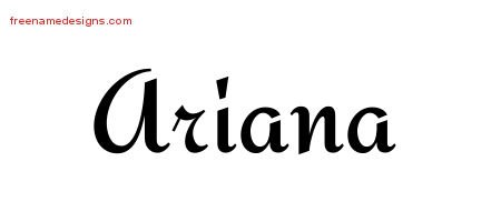 This free name graphic with calligraphic stylish lettering is printed with the custom name Ariana.