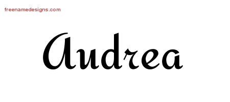 This free name graphic with calligraphic stylish lettering is printed with the custom name Audrea.