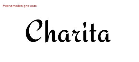 This free name graphic with calligraphic stylish lettering is printed with the custom name Charita.