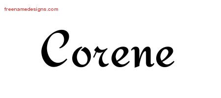 This free name graphic with calligraphic stylish lettering is printed with the custom name Corene.