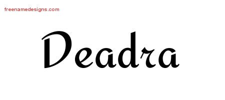 This free name graphic with calligraphic stylish lettering is printed with the custom name Deadra.