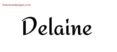 This free name graphic with calligraphic stylish lettering is printed with the custom name Delaine.
