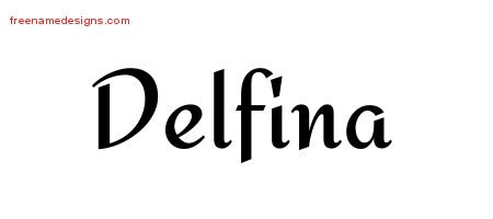 This free name graphic with calligraphic stylish lettering is printed with the custom name Delfina.