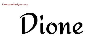 This free name graphic with calligraphic stylish lettering is printed with the custom name Dione.