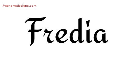 This free name graphic with calligraphic stylish lettering is printed with the custom name Fredia.