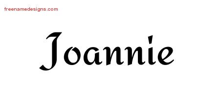 This free name graphic with calligraphic stylish lettering is printed with the custom name Joannie.