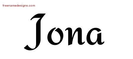 This free name graphic with calligraphic stylish lettering is printed with the custom name Jona.