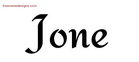 This free name graphic with calligraphic stylish lettering is printed with the custom name Jone.