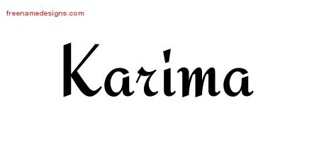 This free name graphic with calligraphic stylish lettering is printed with the custom name Karima.
