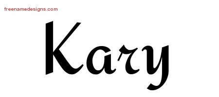 This free name graphic with calligraphic stylish lettering is printed with the custom name Kary.