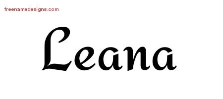 This free name graphic with calligraphic stylish lettering is printed with the custom name Leana.