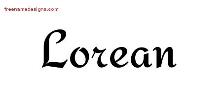 This free name graphic with calligraphic stylish lettering is printed with the custom name Lorean.