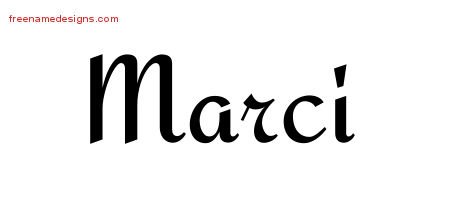 This free name graphic with calligraphic stylish lettering is printed with the custom name Marci.