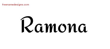 This free name graphic with calligraphic stylish lettering is printed with the custom name Ramona.