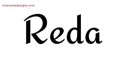 This free name graphic with calligraphic stylish lettering is printed with the custom name Reda.