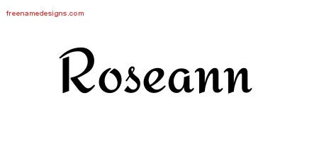 This free name graphic with calligraphic stylish lettering is printed with the custom name Roseann.