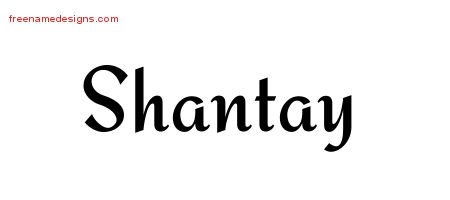 This free name graphic with calligraphic stylish lettering is printed with the custom name Shantay.