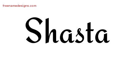 This free name graphic with calligraphic stylish lettering is printed with the custom name Shasta.