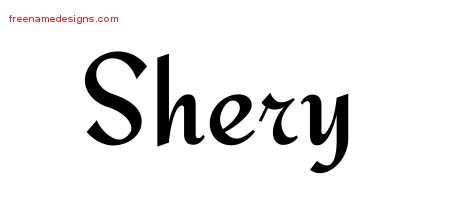 This free name graphic with calligraphic stylish lettering is printed with the custom name Shery.