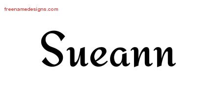 This free name graphic with calligraphic stylish lettering is printed with the custom name Sueann.