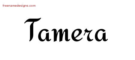 This free name graphic with calligraphic stylish lettering is printed with the custom name Tamera.