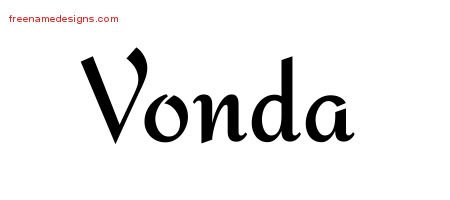 This free name graphic with calligraphic stylish lettering is printed with the custom name Vonda.