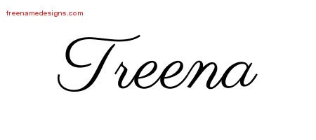 This free name graphic with classic lettering is printed with the custom name Treena.
