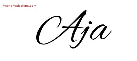 This free name graphic with cursive lettering is printed with the custom name Aja.