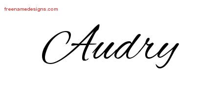 This free name graphic with cursive lettering is printed with the custom name Audry.