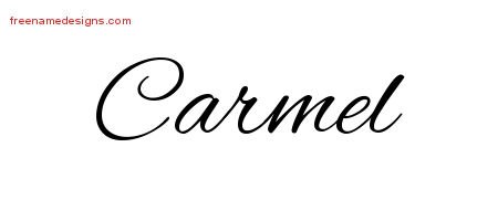 This free name graphic with cursive lettering is printed with the custom name Carmel.