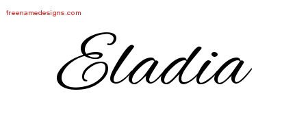 This free name graphic with cursive lettering is printed with the custom name Eladia.