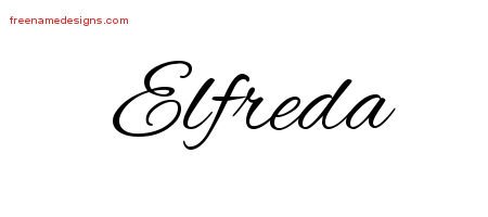 This free name graphic with cursive lettering is printed with the custom name Elfreda.