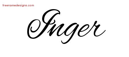 This free name graphic with cursive lettering is printed with the custom name Inger.