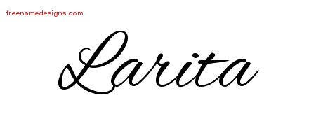 This free name graphic with cursive lettering is printed with the custom name Larita.