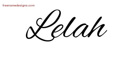 This free name graphic with cursive lettering is printed with the custom name Lelah.